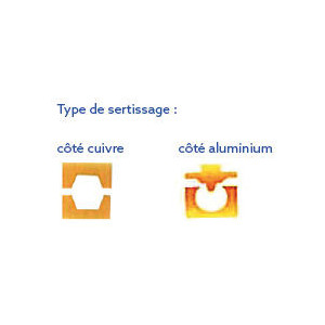 - Mise en œuvre: par poinçonnage profond côté aluminium et par retreint hexagonal côté cuivre