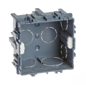 Boîtier d’encastrement multi-matériaux équipé de griffes métalliques assurant un excellent maintien dans tout type de matériaux pleins (béton cellulaire, carreau de plâtre) et creux (briques, parpaings).