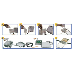 - Boîte de dérivation équipée de membranes étanches à insertion directe pour fils, câbles et conduits rigides