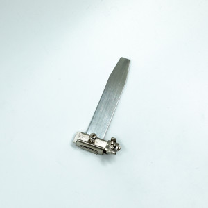 Contact assuré par écrasement du conducteur entre deux couches du ruban tendeur, ce qui assure un sertissage parfait.